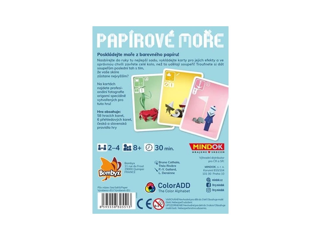 Papírové moře je jednoduchá a zároveň chytrá hra s šikovným grafickým nápadem. Skládají se v ní dvojice a sady, nasbírejte 4 mořské panny a užijte si designově vyvedenou hru
